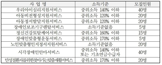이번모집에서는 9개사업 185명의 이용자를 모집합니다.