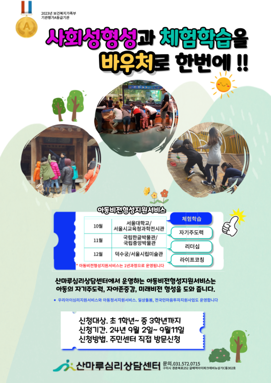 2024년 하반기 구리시 아동비전과 아동정서 바우처 신청하세요.