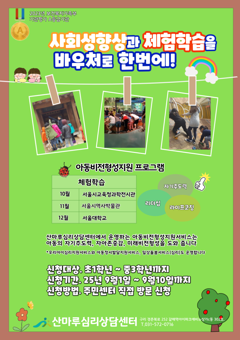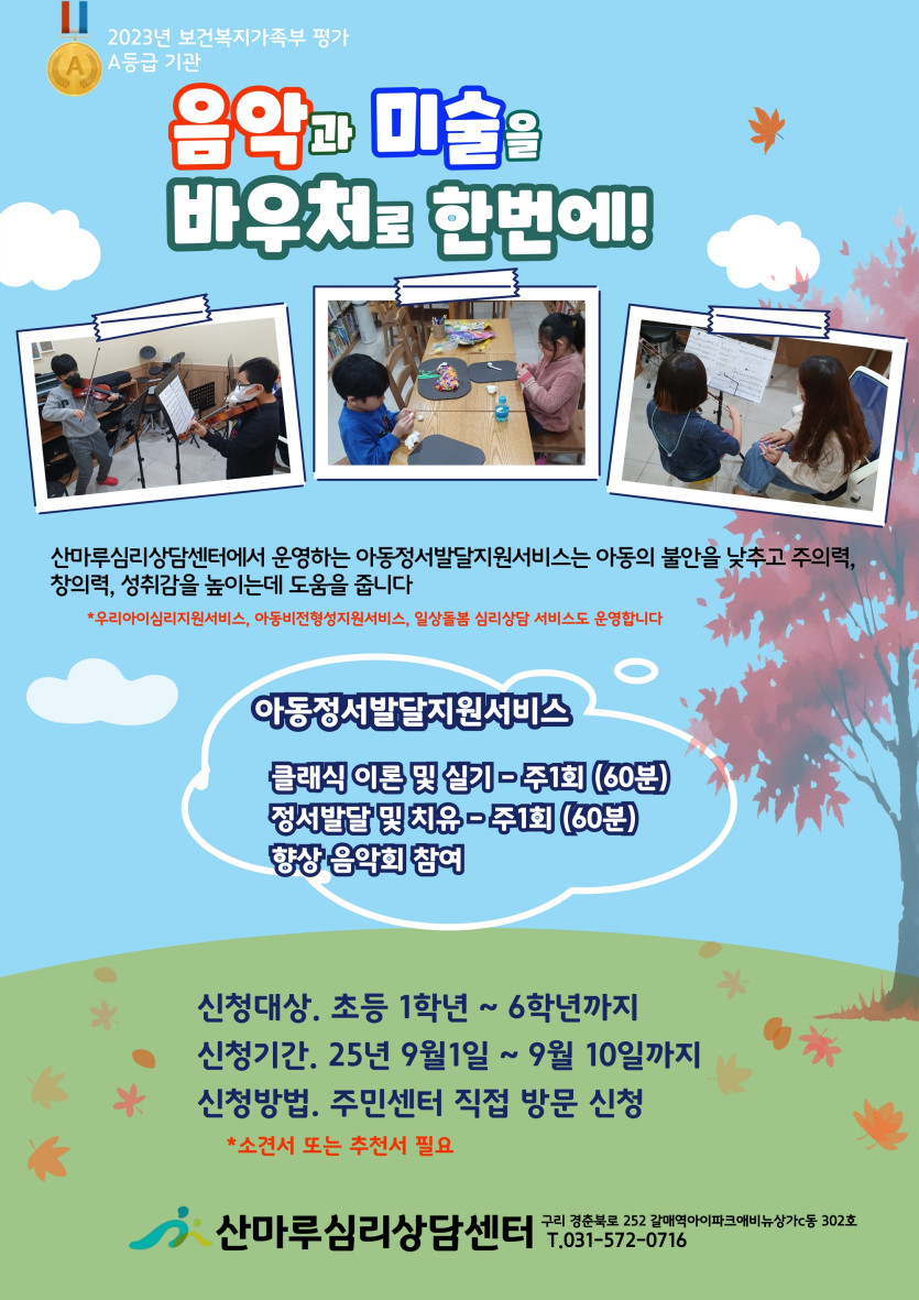 2025년 하반기 구리시 아동비전과 아동정서 바우처 신청하세요.
